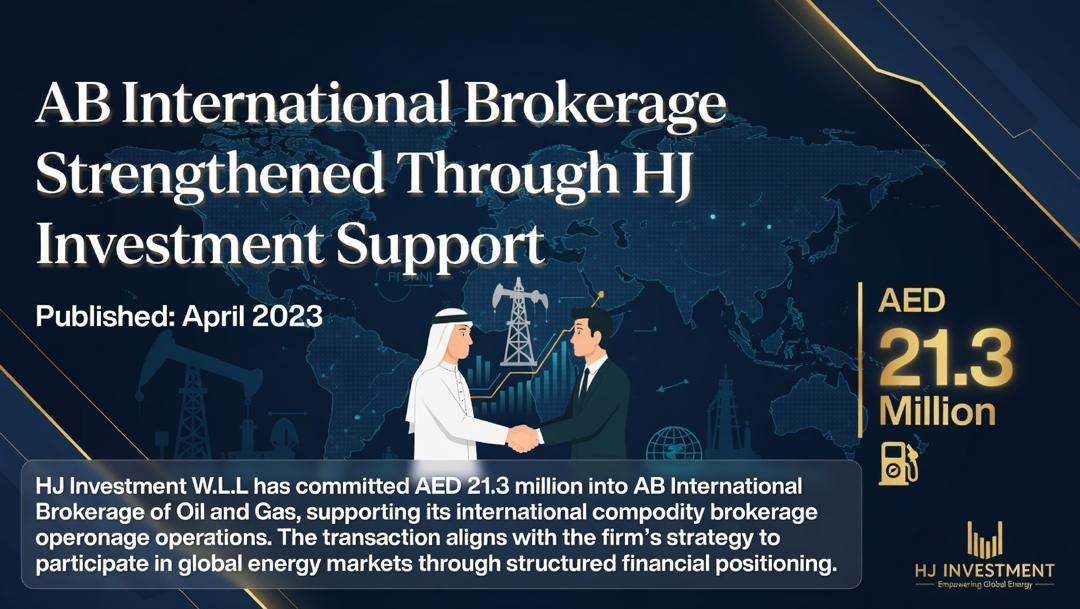 HJ Investment W.L.L has committed AED 21.3 million into AB International Brokerage of Oil and Gas, supporting its international commodity brokerage operations. The transaction aligns with the firm’s strategy to participate in global energy markets through structured financial positioning.
